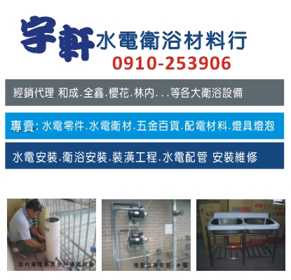 宇軒水電衛浴材料行 - 桃園水電工程、桃園水電材料、楊梅水電工程、楊梅水電材料、桃園衛浴設備
